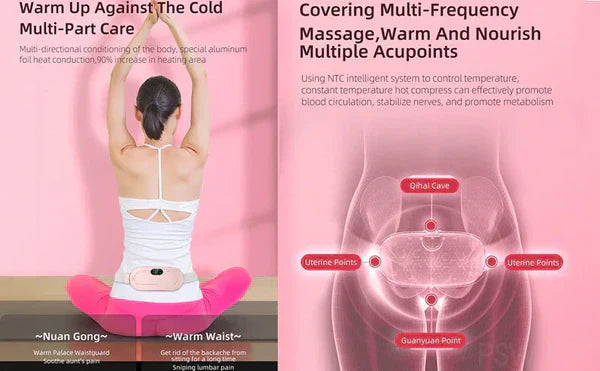 Experience Quick & Safe Relief from Menstrual Pain with Our Smart Heating & Vibration Pad - Featuring Fast Heating & Vibration in Just 2 Seconds with Built-in Upgraded Intelligent Security Chip.