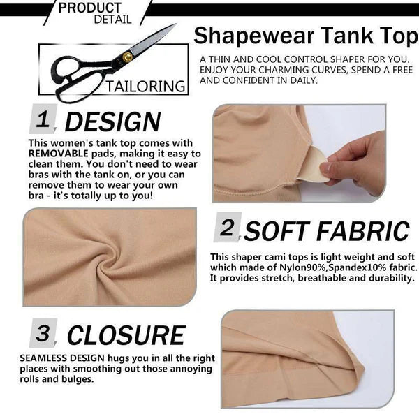 - RESHAPING YOUR UPPER BODY cami shaper shapes your top greatly with high compression, giving you a smoother belly, slimmer waist, lifted breasts, and back pain relief.