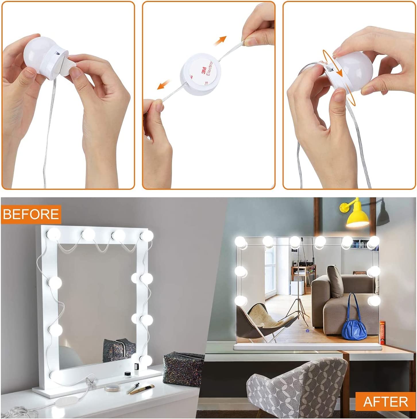- Easy and stress free installation: No assembly or electrical wiring is required, peel and stick, plug and play, it only takes a few minutes easy to set up your own Hollywood style makeup mirror