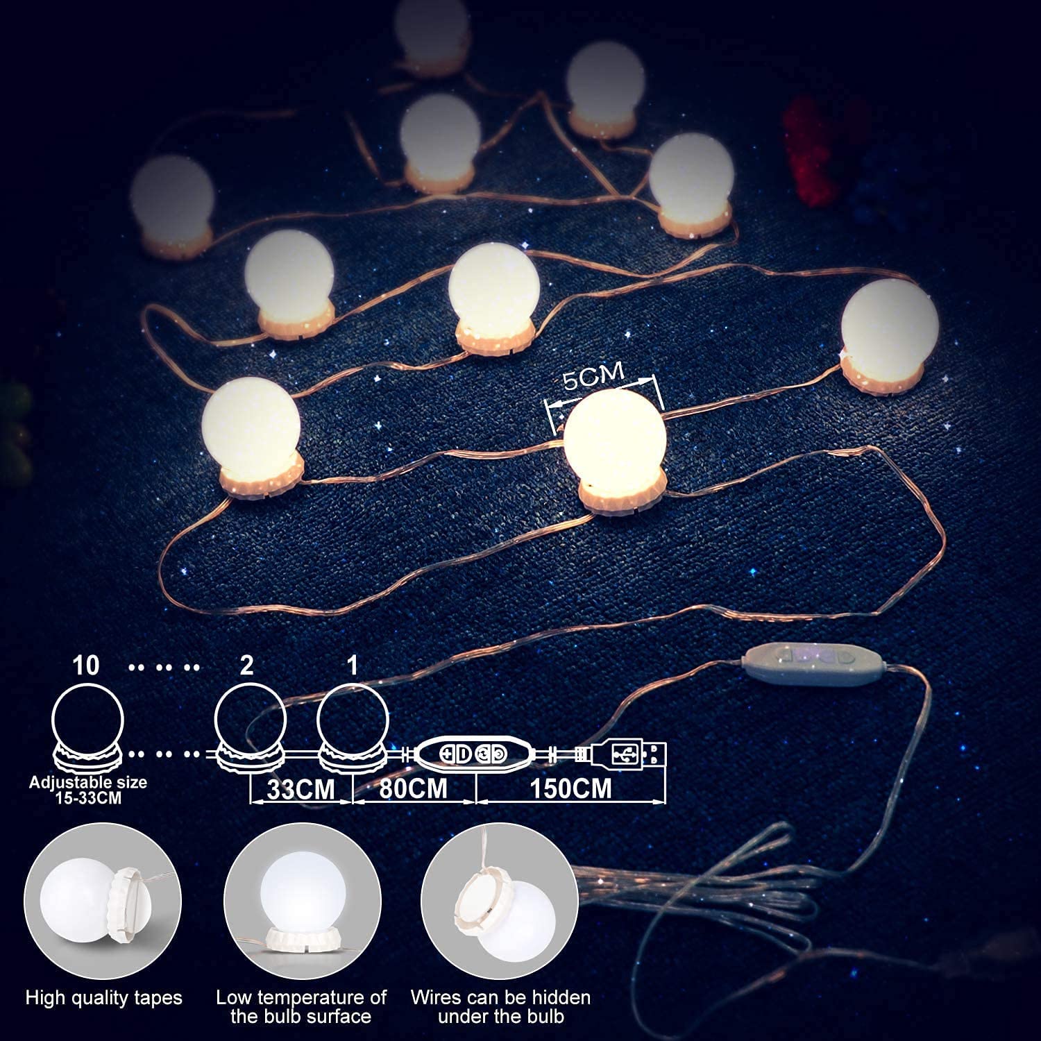 - Widely applicabel led lights: Makeup mirror vanity light with more bright led lights for makeup, shooting and selfies, and decorating your vanity countertops and windowsills, dressing room and bathroom. Mirror not included